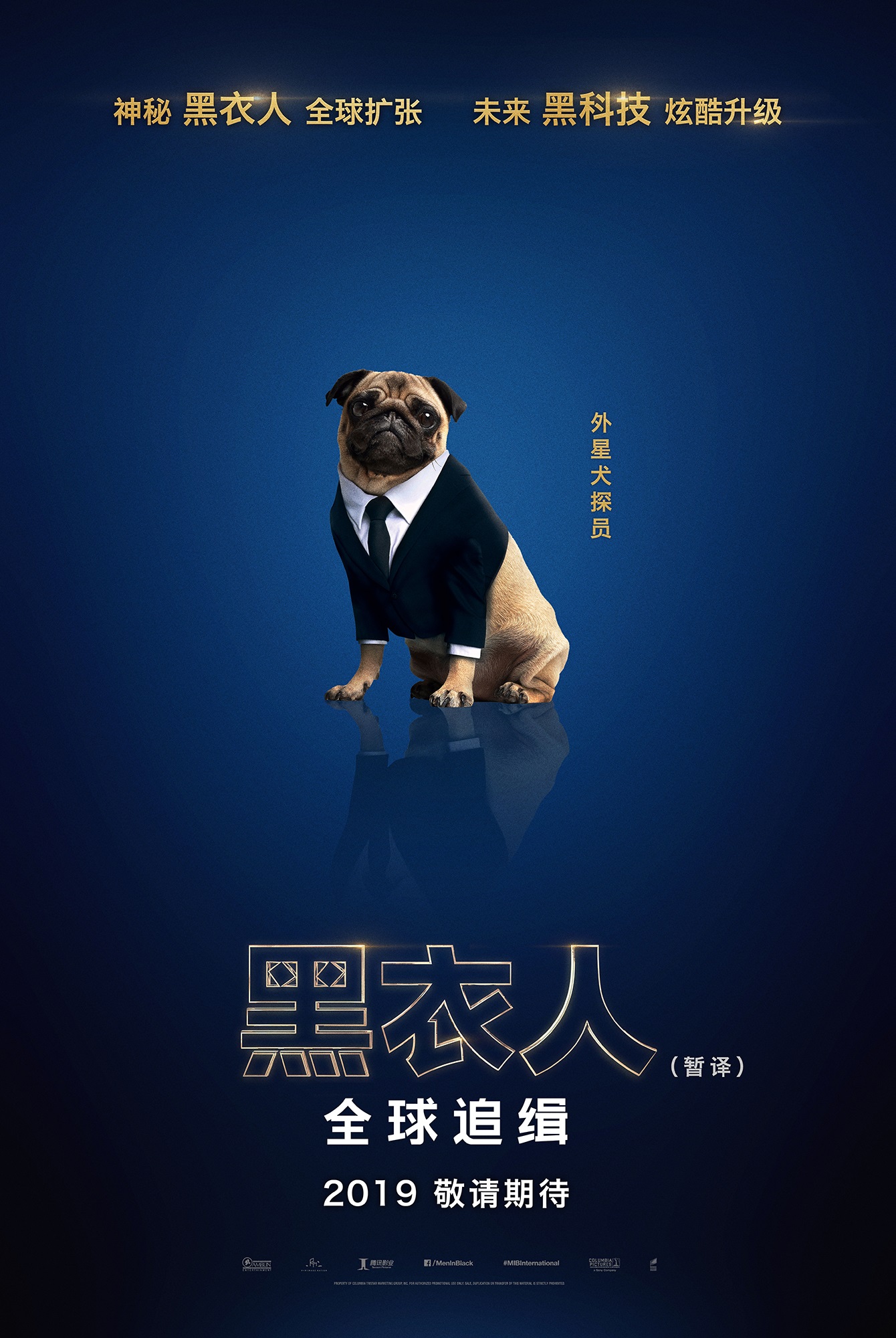 这组海报中,还有一只与黑衣人同样装扮的狗狗也十分引人瞩目。这只名为弗兰克的八哥犬,精通人类语言,曾在电影《黑衣人2》里作为外星犬探员执行过任务,也是“黑衣人”三部曲中人气颇高的外星人角色之一。