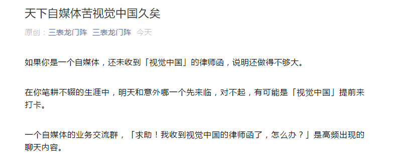 自媒体“三表龙门阵”:视觉中国有钓鱼执法之嫌