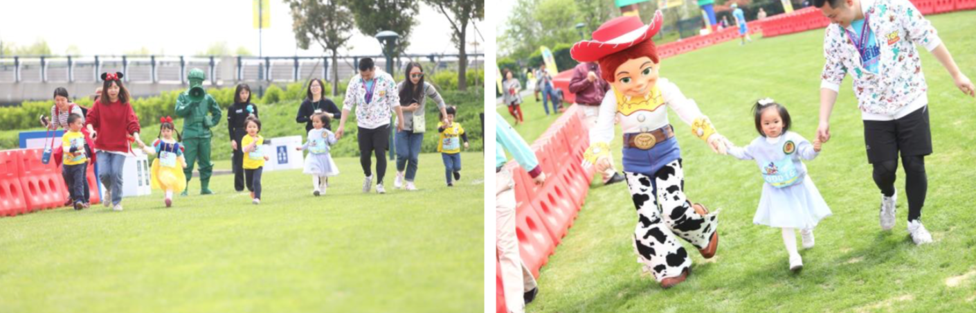 13日下午,首届“奇跑迪士尼宝贝跑”于星愿公园开赛,邀请了600多名2至5岁的小朋友前来体验。《玩具总动员》系列电影中的角色胡迪和翠丝也在赛道旁亮相,为小朋友们助威加油。