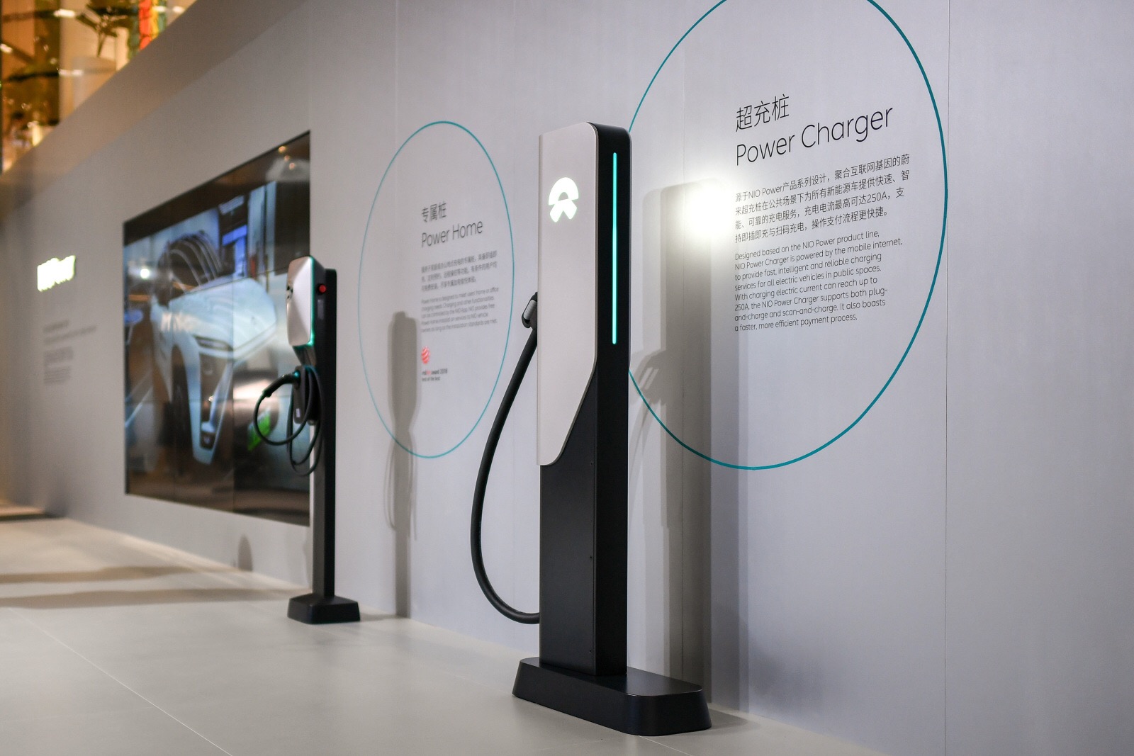 同时,蔚来还展示了蔚来能源(NIO Power)服务体系,其超充桩也在车展上首次亮相,蔚来换电站还首次在车展现场进行了换电演示。此外,蔚来还展示了其220kW永磁同步双电驱动系统、碳纤维壳体电池包等技术。