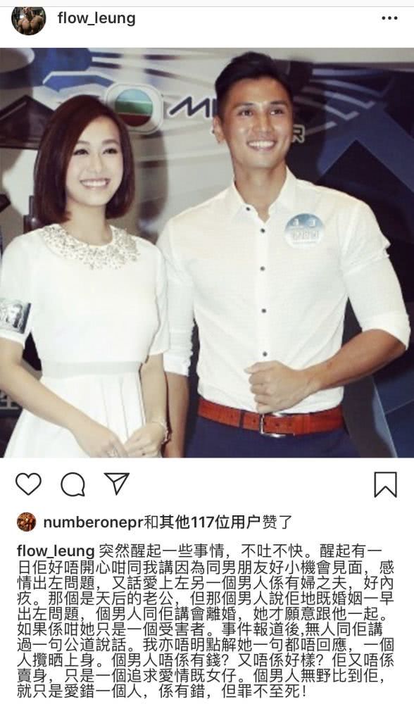 新京报讯 4月20日,黄心颖的好友、曾参加2016年“香港先生”评选的梁裕恒在ins上发文,称“突然想起一些事情,不吐不快”。他在文中表示,黄心颖曾同自己说过她爱上一个有妇之夫,“那个男人说会离婚,她才愿意跟他在一起,她只是一个受害者”。至于梁裕恒和黄心颖是否为“好友”以及究竟好到什么程度,他此次发声的目的,港媒并未从几位当事人处得到明确答复。