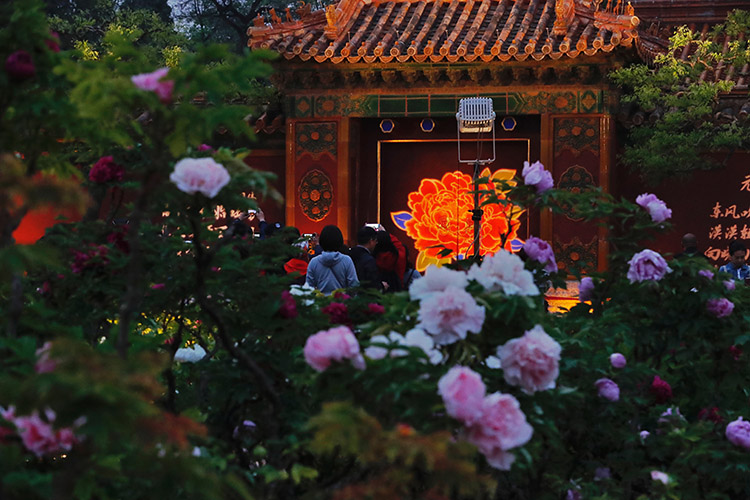 景山首次全园夜赏牡丹 感受别样光影幻境
