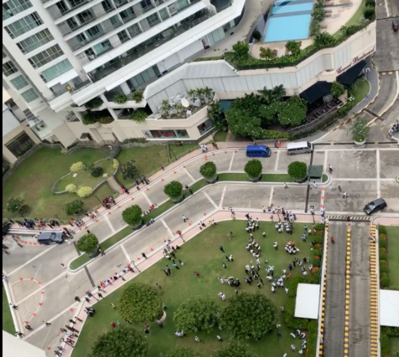 爆炸发生后肉桂大酒店下方人群聚集。图片来源:受访者供图