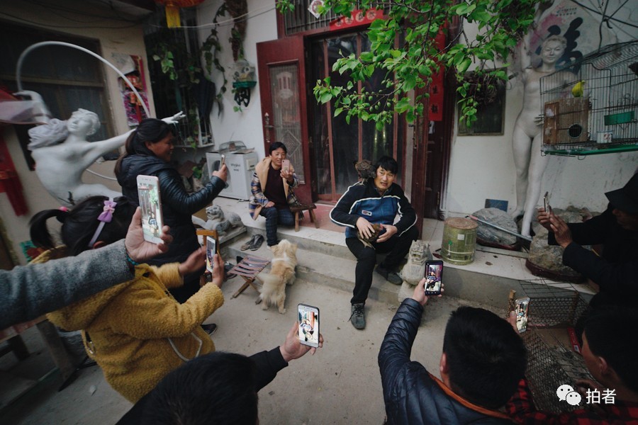 像上班一样,朱之文的工作是配合着合影。只要院门一开,总会有十多个手机对着他。时间长了,他学会了多招手、少说话,多唱歌、少说话,多微笑、少说话,总之,最大的原则是少说话,“他都在那直播呢,你一句话说错了,那就收不回来了”。