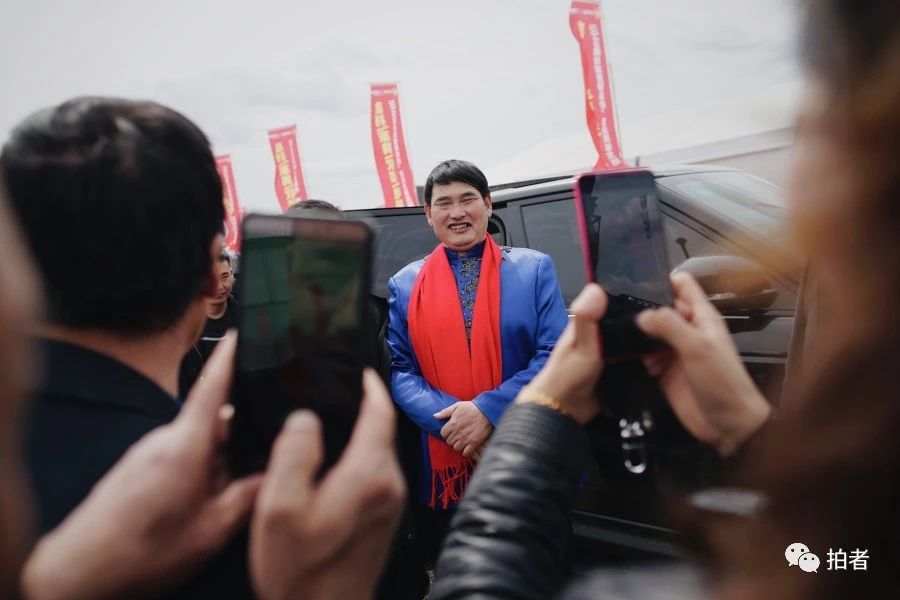 △ 朱之文抵达演出现场,工作人员们纷纷拍照留念。在一场大型家具厂商促销大会上,伴随着贯穿耳膜的dj音乐声,朱之文在安保方队的护送中,上台给观众献唱。