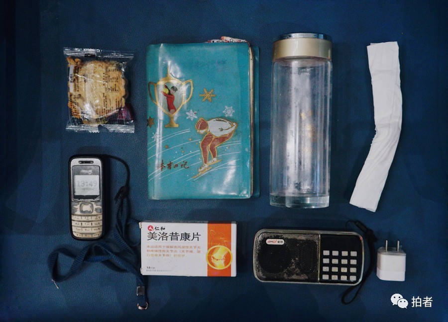 △朱之文随身背的包,已经用了9年。包里,他用来记演出日程的本子封面掉了,水杯是参加活动别人送的,卫生纸是用了一半的卷纸。