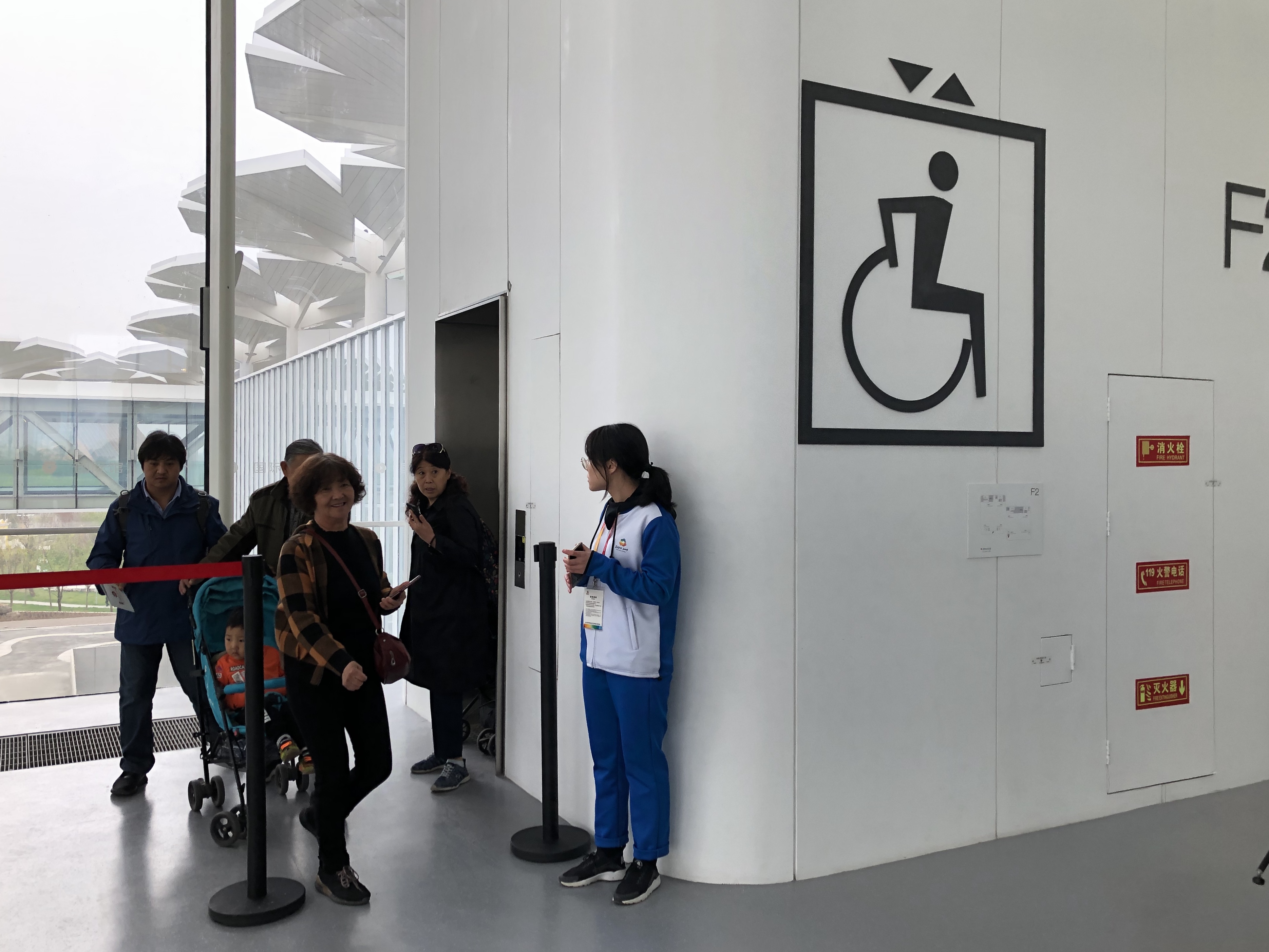 国际馆设无障碍通道,“巨型”指示标志瞩目
