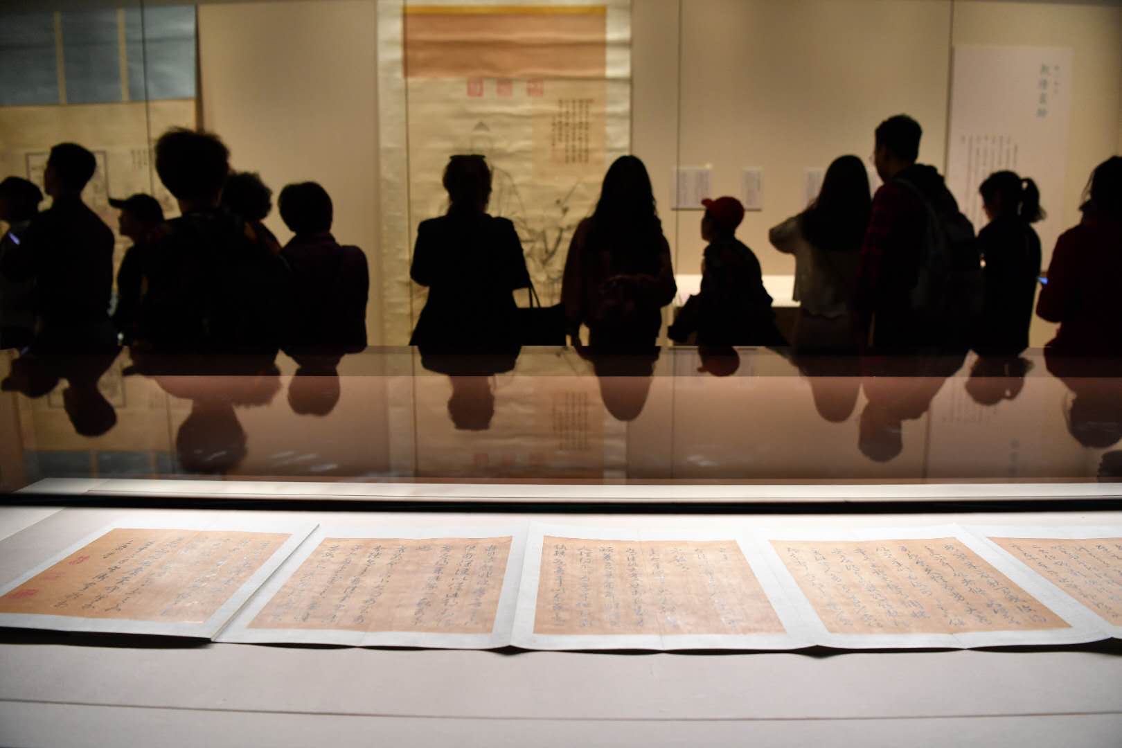 展览还展出了乾隆帝临三希文翰卷、乾隆帝临宋人西园雅集图卷、允禧盘山十六景图册、董邦达三希堂记意图轴等作品。