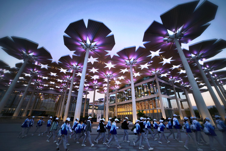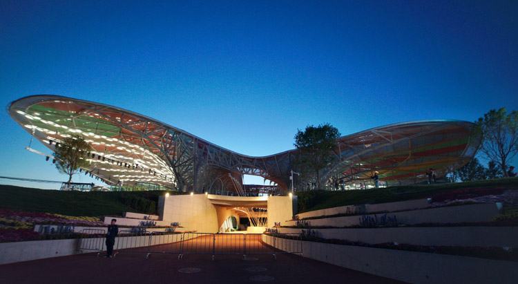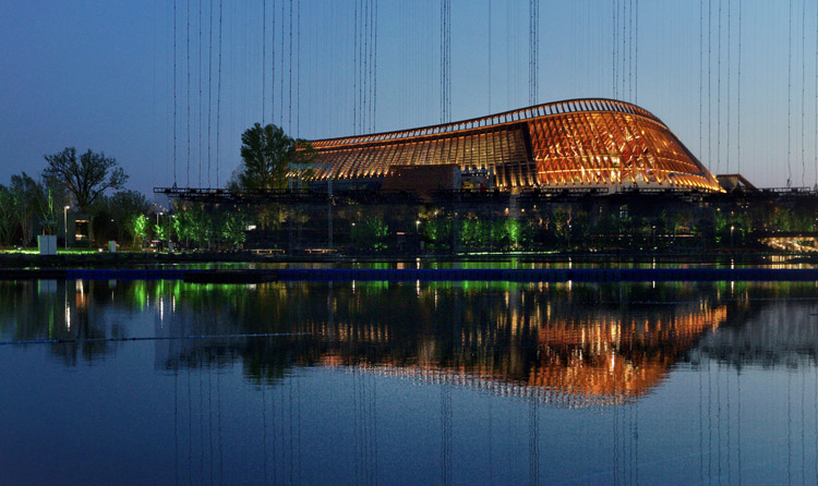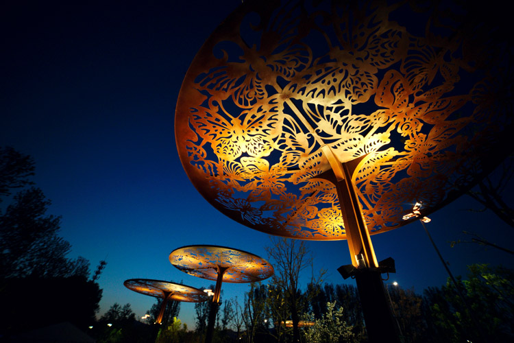 新京报讯 4月30日傍晚,北京世园会夜景照明开启,园区夜景美不胜收。