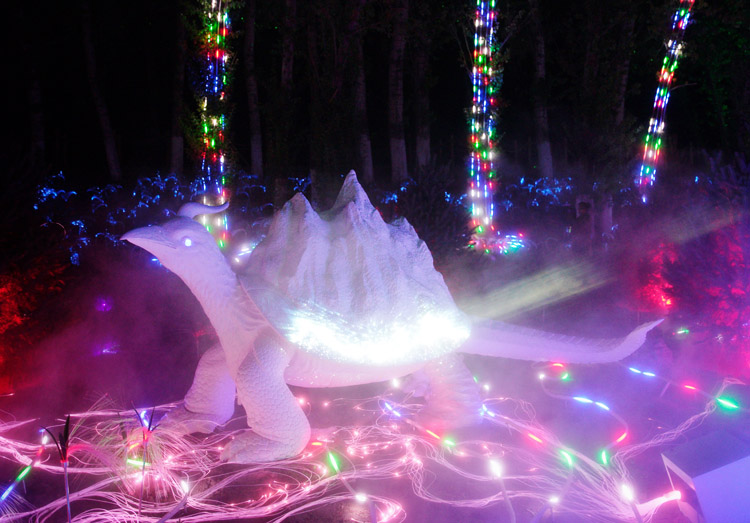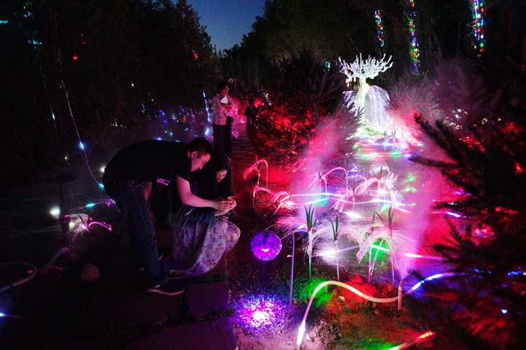 自然生态展示区的“奇幻光影森林”,每晚7时-9时开启声光特效。