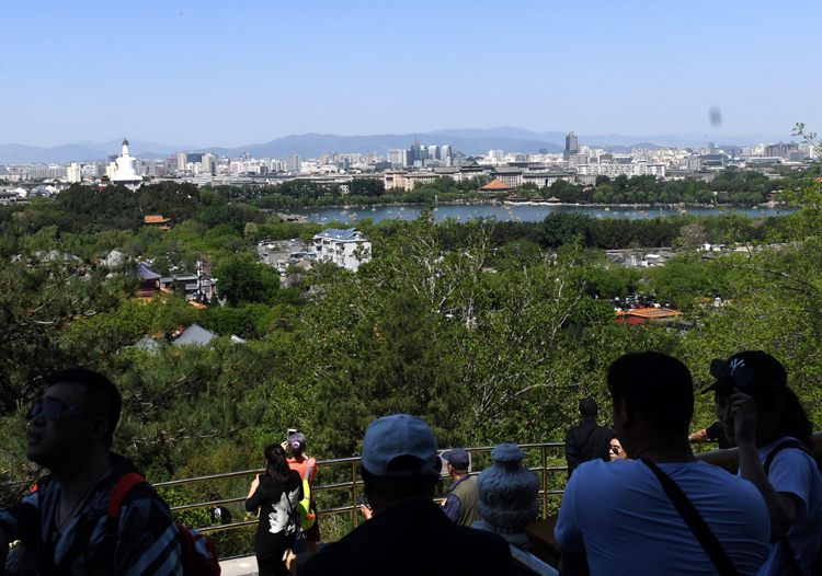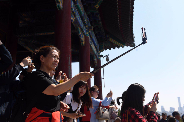 景山公园,许多游客在拍摄美景。