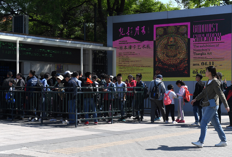 中国美术馆,观众排起了长队等待参观展览。