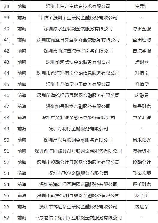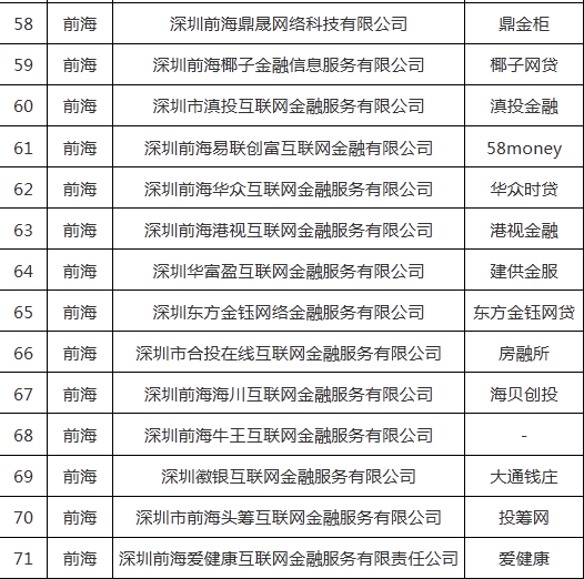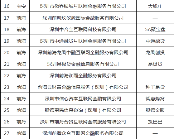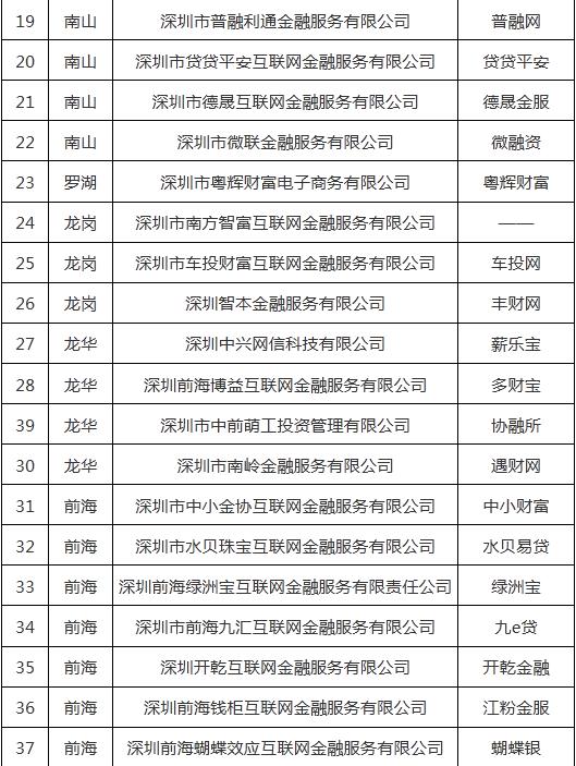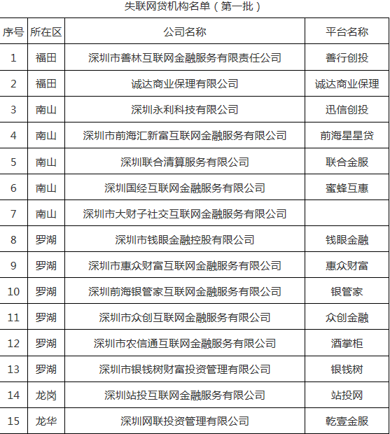 2、深圳市互联网金融风险专项整治工作领导小组办公室关于发布深圳市P2P网络借贷风险专项整治第一批失联网贷机构名单的通知