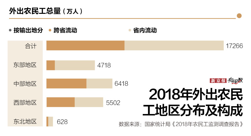 全国来看,2018年的外出农民工中,省内就业的农民工比上年增加162万人,到省外就业的农民工却比上年减少了81万人。