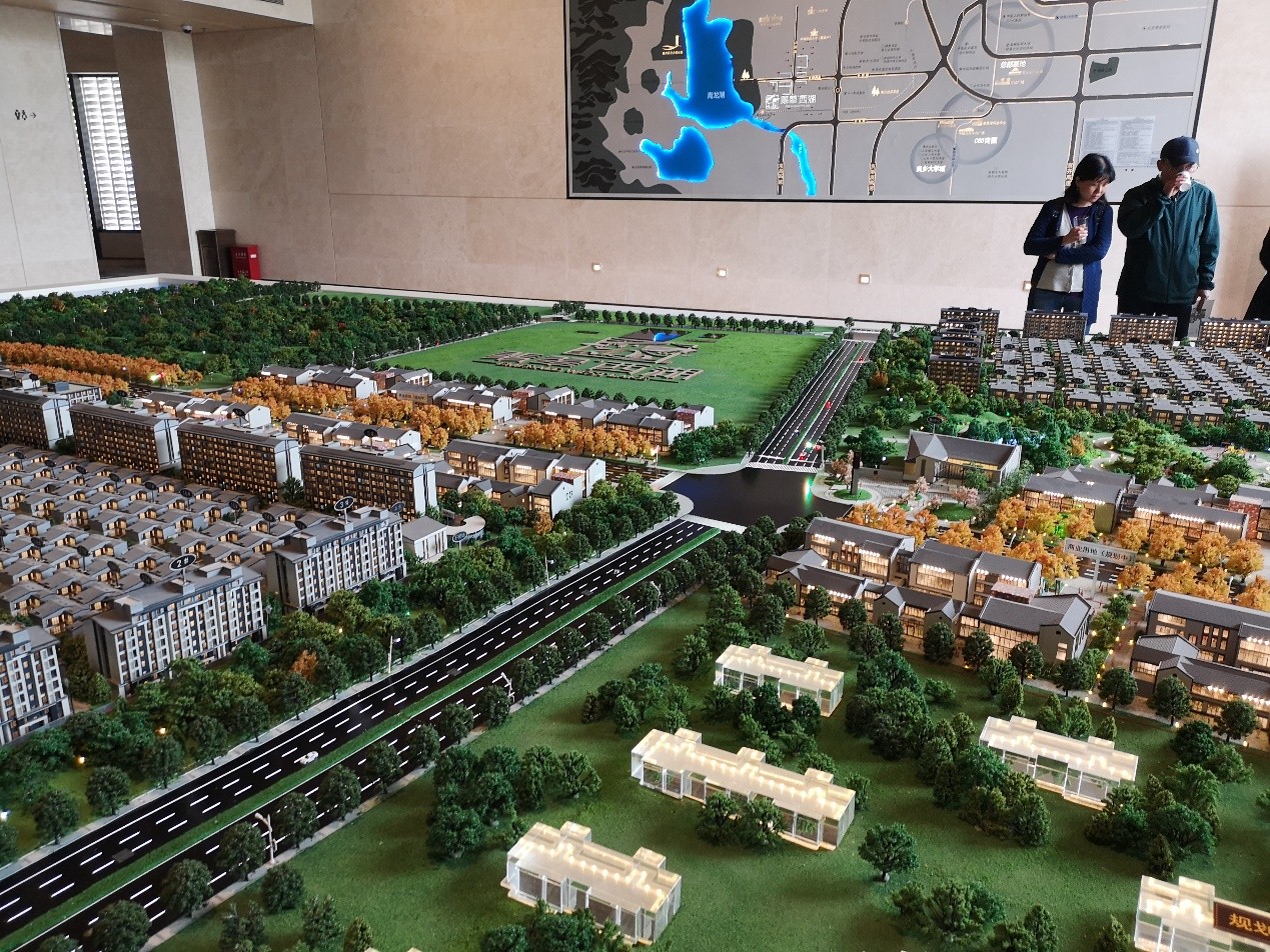 从售楼处的沙盘可以看出,万科翡翠西湖采用“高低配”。