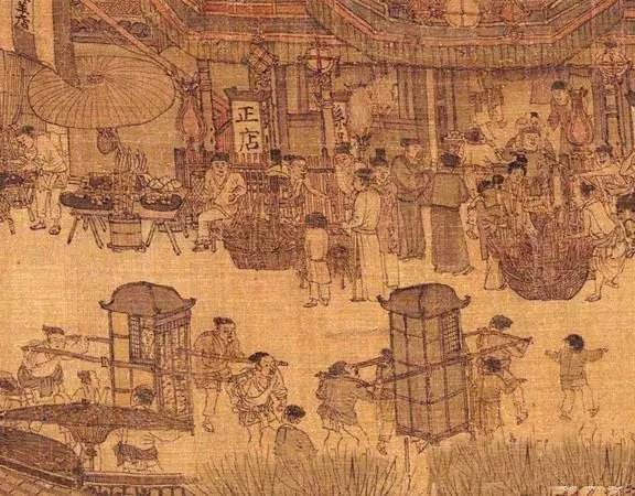 北宋张择端《清明上河图》中热闹的街市。