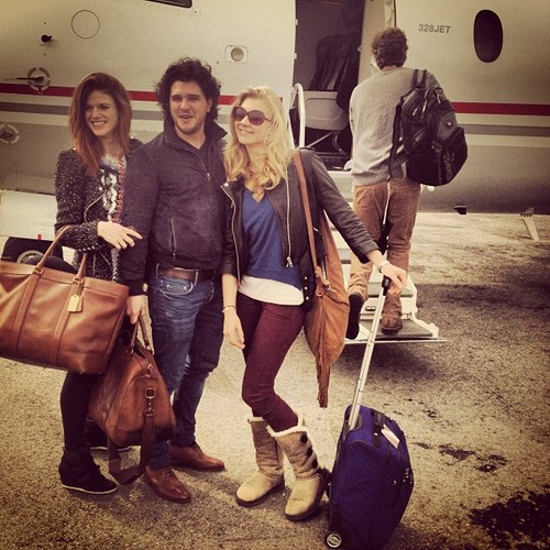 《权力的游戏》中,琼恩·雪诺假装向野人投诚,并与“女野人”Ygritte擦出火花,当他要逃走报信的时候,箭法精准的Ygritte假装射偏留下了他的一条命。后来Ygritte跟随其他人一起攻入黑城堡,在雪诺面前被射死,为这段复杂而凄美的爱情划上了一个不圆满的句号。尽管雪诺和火吻在剧中天各一方,不过现实生活中,饰演这两个角色的基特·哈灵顿和罗斯·莱斯利却一度从荧幕情侣变成真正的恋人。
