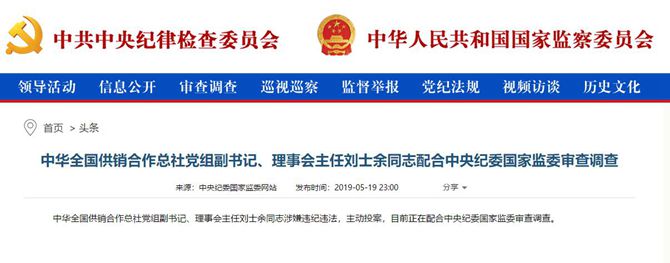据中央纪委国家监委网站消息,中华全国供销合作总社党组副书记、理事会主任刘士余同志涉嫌违纪违法,主动投案,目前正在配合中央纪委国家监委审查调查。