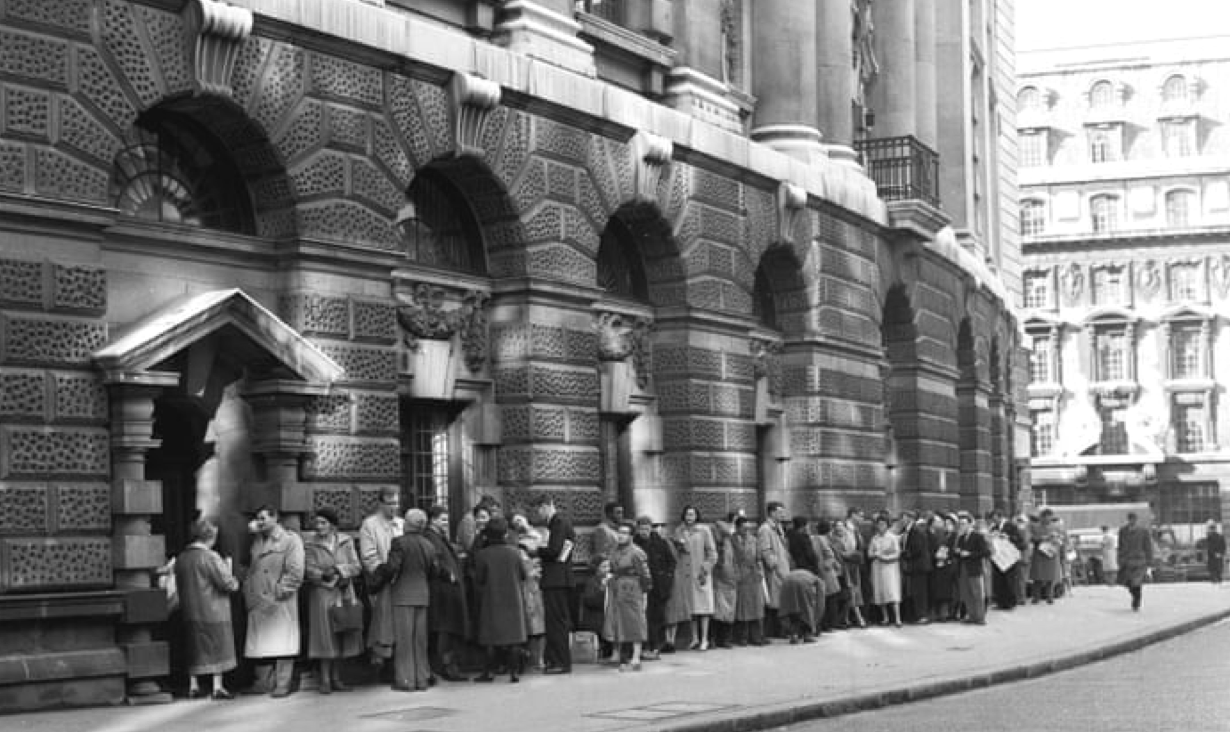 1960年“查泰莱夫人案”期间在老贝利门前排队的人们