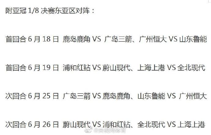 央视网体育微博消息:亚冠东亚区小组赛全部结束,东亚区八强出炉。其中,中超三队,分别是恒大、上港以及鲁能;日本J联赛三队,分别是鹿岛鹿角、广岛三箭、以及浦和红钻;韩国K联赛只有两队晋级,分别是全北现代和蔚山现代。亚冠1/8决赛东亚区具体对阵如下:
