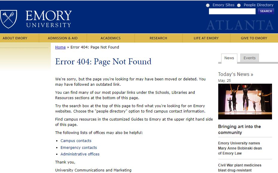 埃默里大学关于李晓江的页面已无法显示。 埃默里大学官网截图