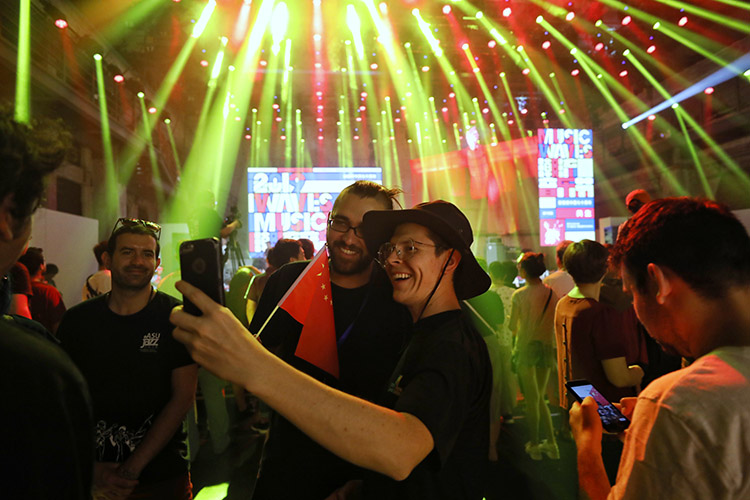 新京报讯 5月25日,“2019潮流音乐节”开幕式在798玫瑰之名艺术中心举行。音乐节由北京市朝阳区文化馆主办,以“共生·致敬共和国”为主题。来自智利、墨西哥、牙买加等8支国家的乐队与9支国内乐队和歌手,联手呈现20场精彩演出,演出分温暖致敬、电音之夜、石头狂潮三大板块。