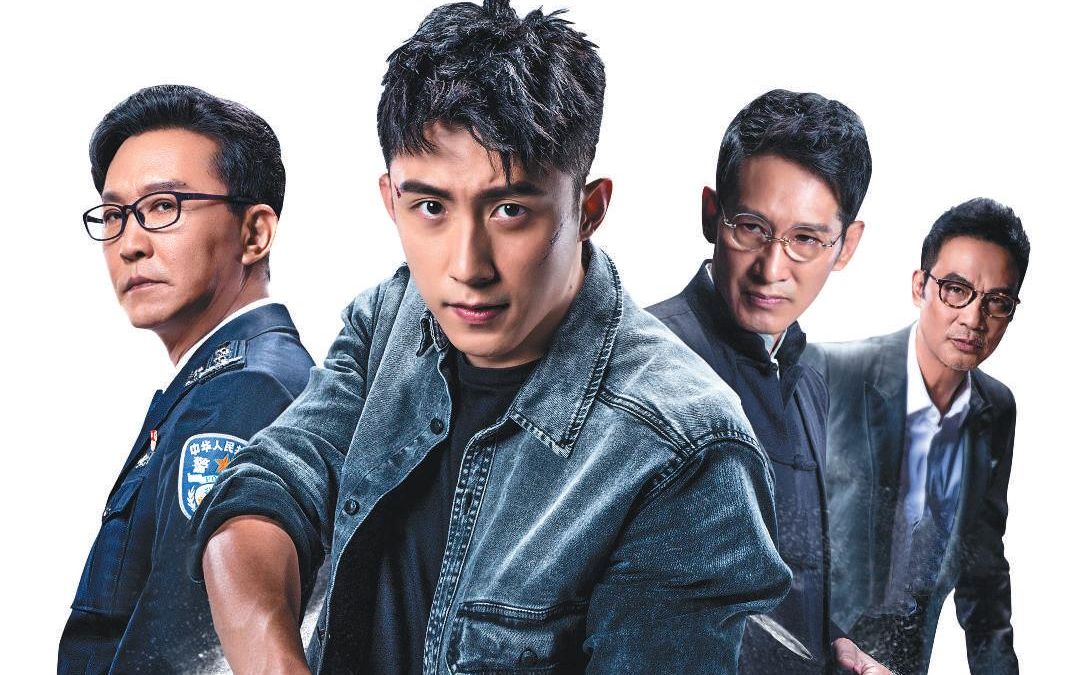 《破冰行动》主角李飞(黄景瑜饰)和几位围绕案件的主演。