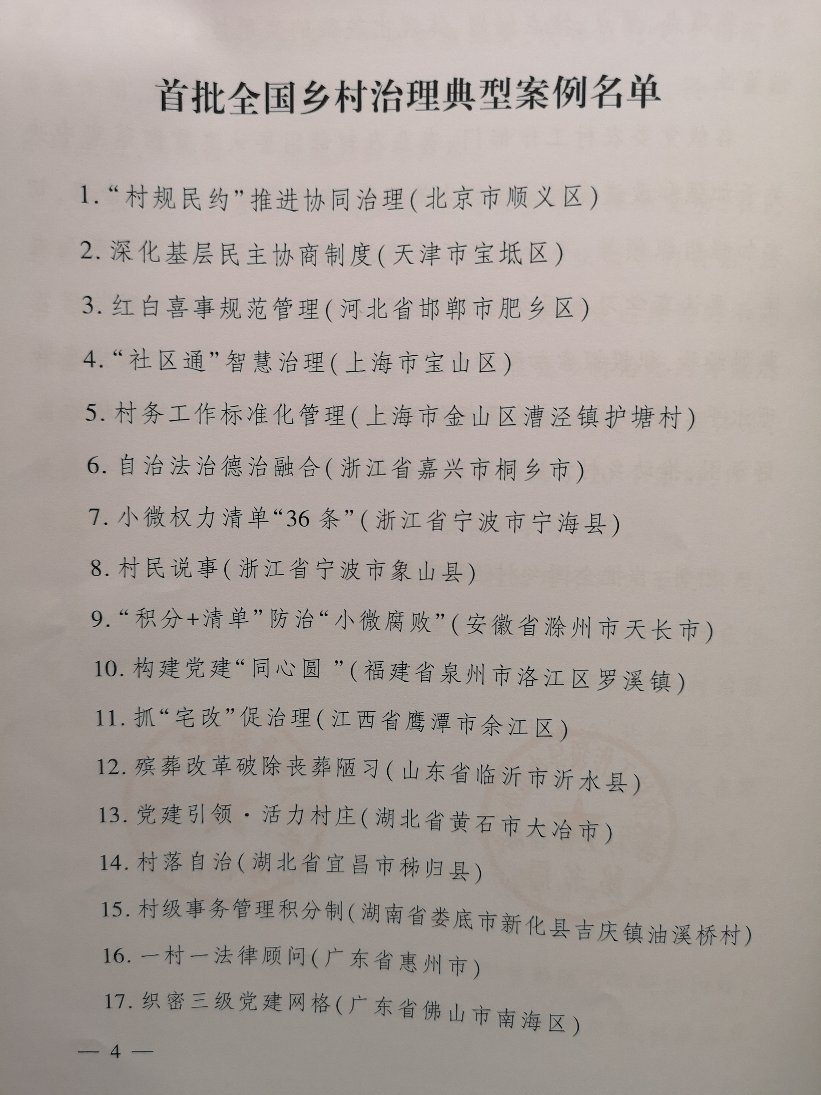 首批全国乡村治理典型案例名单。