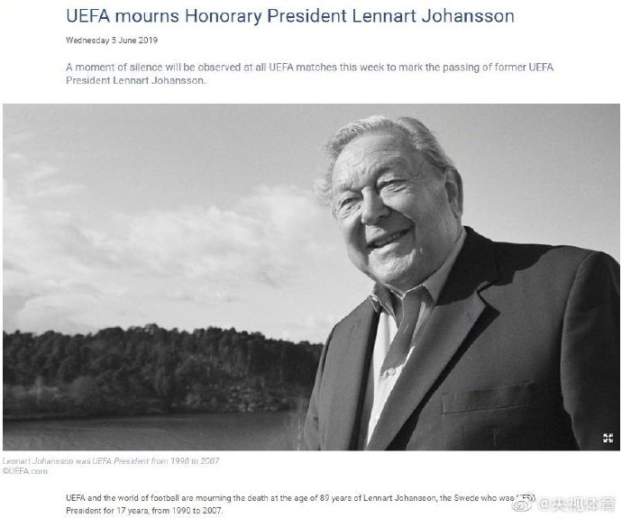 据央视体育微博6月5日消息 根据官方消息,前欧足联主席约翰松于当地时间昨天去世,享年89岁。 约翰松曾于1990年-2007年间担任欧足联主席,并在他的任期内见证了欧冠联赛的诞生,外界也因此将其称为欧冠联赛之父 。