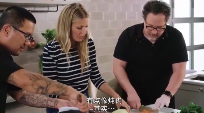 “小辣椒”的饰演者格温妮丝·帕特洛(中)现场做“辣椒汤”。