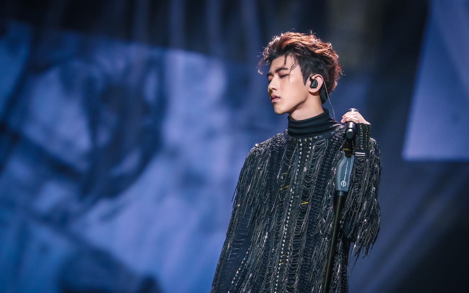 蔡徐坤在舞台上投入演出。