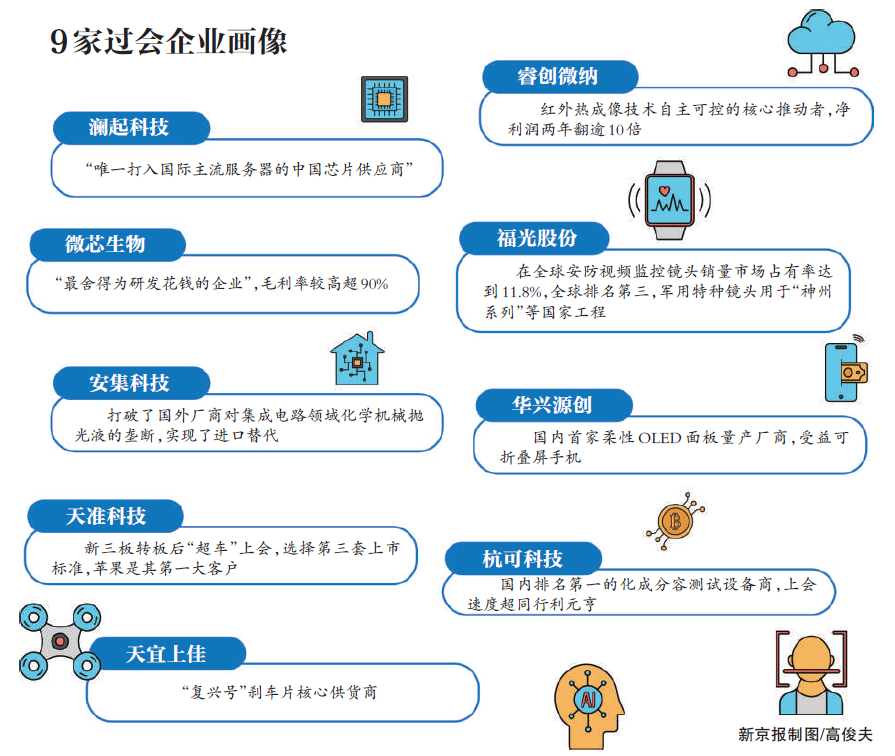 此外,9家企业中,没有亏损企业,研发投入占营收的比例参差不齐,有的是5%左右,有的则达50%以上。最新过会的杭可科技2018年的研发投入占营业收入的5.18%,而微芯生物2018年的研发投入占营业收入的55.85%。
