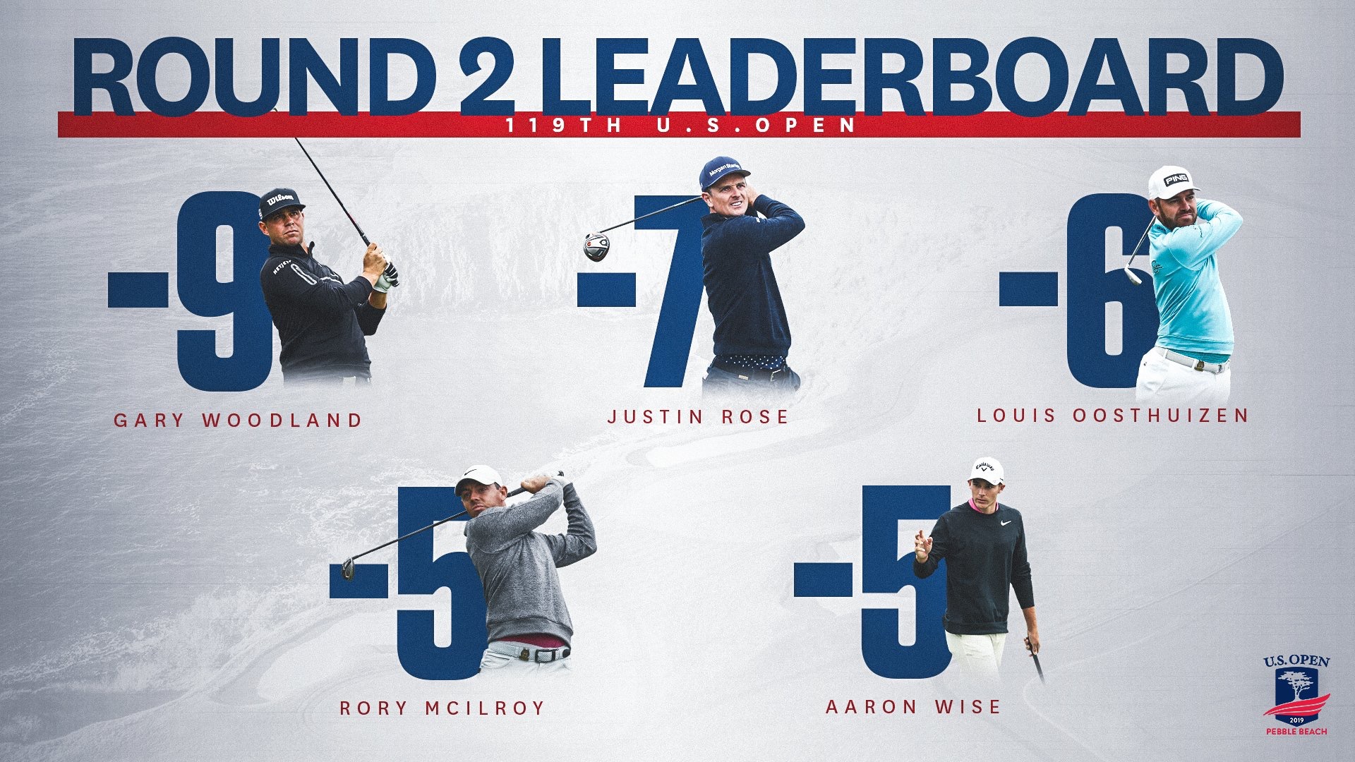 新京报讯(记者邓涵予)第119届美国公开赛今日在圆石滩高尔夫球场结束第二轮争夺,加里·伍德兰德以两轮低于标准杆9杆强势领跑,首轮领先的罗斯以2杆之差排在第二名。