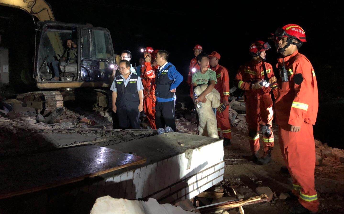 地震发生后不久,宜宾矿山急救队和宜宾消防支队先后赶往救援。随后,宜宾蓝豹救援队也携带搜救犬赶到现场。小龙的父亲抱着儿子生前最爱的玩具熊,也匆忙赶来。