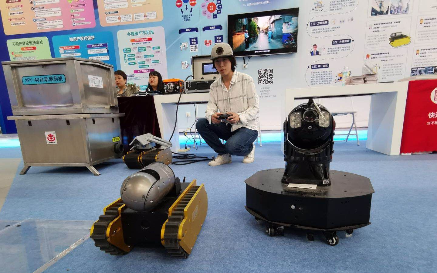 双创周“问计于民”展区展示了几项此前获奖的作品,其中一项是燃气管道巡检机器人。