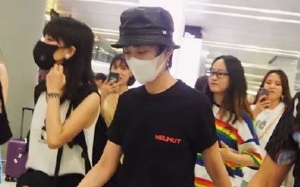 曾轶可当日机场图曝光,以帽子和口罩遮面。