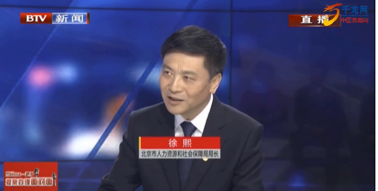 北京市人力资源和社会保障局党组书记、局长徐熙做客“市民对话一把手•提案办理面对面”直播访谈节目。千龙网直播截图