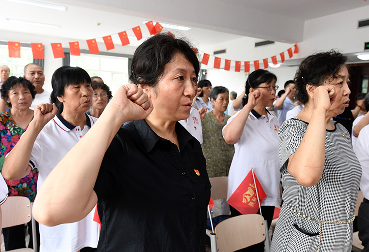 社区全体党员重温入党誓词。