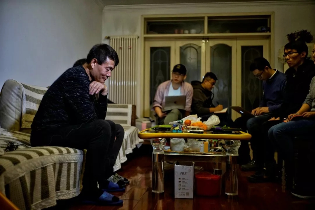 ▲ 2018年12月13日,天津滨海新区张仁家中,张仁夫妻正在接受各家媒体采访,张仁在一旁沉思,听着妻子回忆女儿和女婿之间事情。 新京报记者 王飞 摄