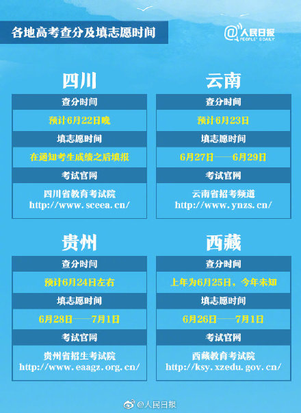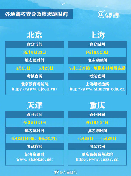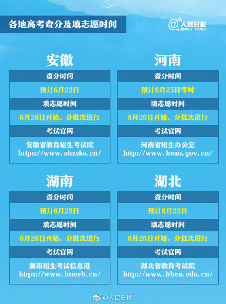 据人民日报消息,根据公开信息,今晚(22日),四川将率先公布高考成绩,四川的考生们做好准备了吗?从今天开始一直到25号,连续4天,全国各地都将陆续放榜。同时,各地的志愿填报安排也已公布。31个省区市查分报志愿时间表全汇总↓↓
