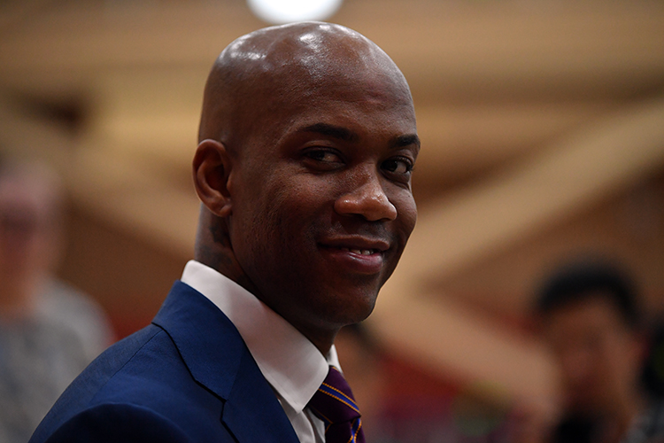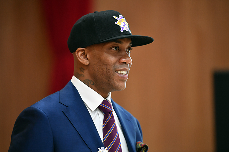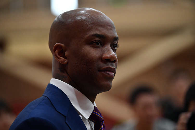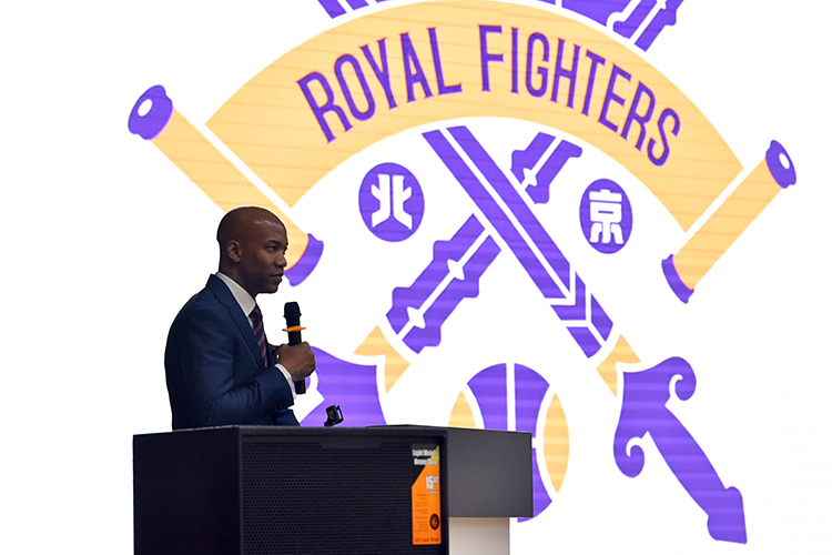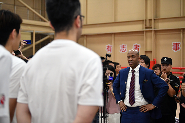 马布里出任北控男篮主教练,在发布会上致辞。