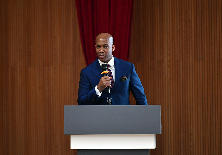 马布里在发布会上致辞。