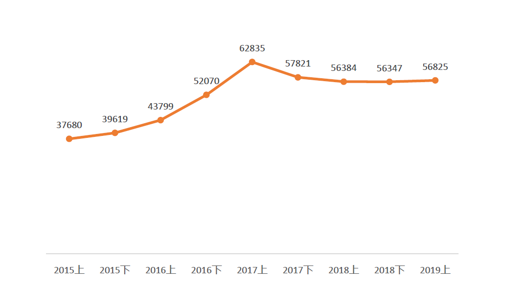 2015年-2019年北京二手住宅交易均价半年走势(元/平方米)