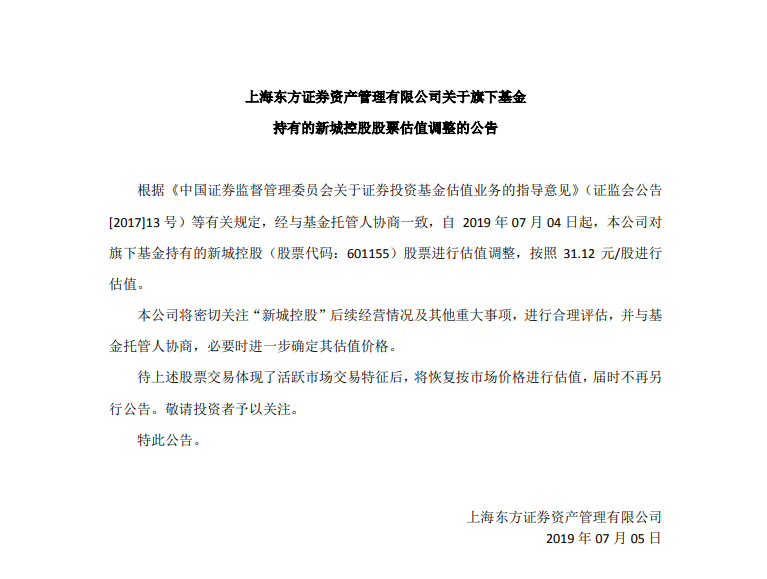 多家基金公司下调新城控股股票估值至31.12元/股