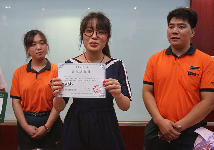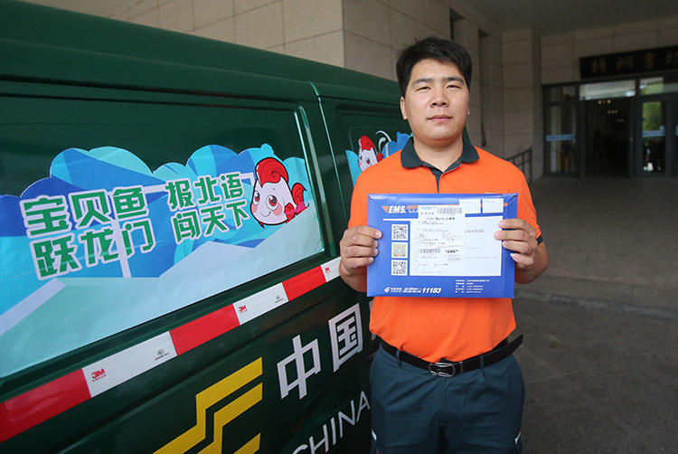 北京邮政速递的工作人员出发,准备将录取通知书送到考生手中。