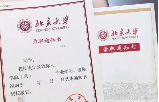 ▲ 北京大学录取通知书