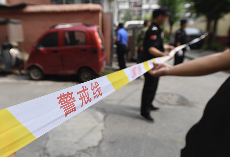 拆除现场拉起了警戒线。