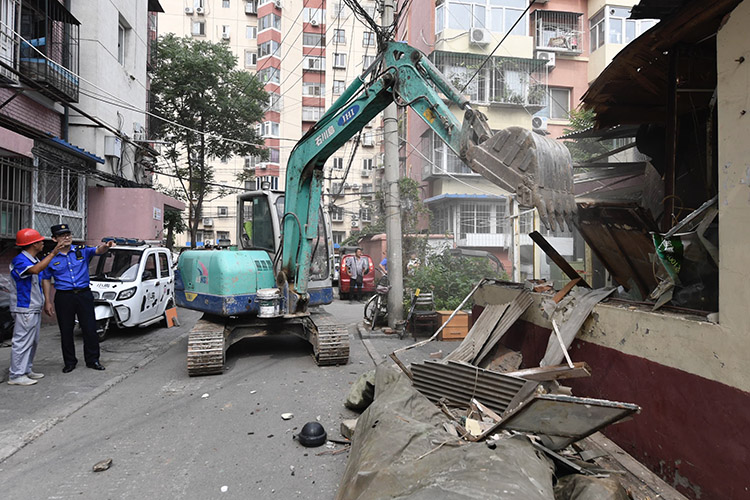 城管拆除农光东里违建 推进社区环境提升