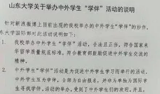 近日,山东大学的留学生“学伴”制度再次引起舆论争议。