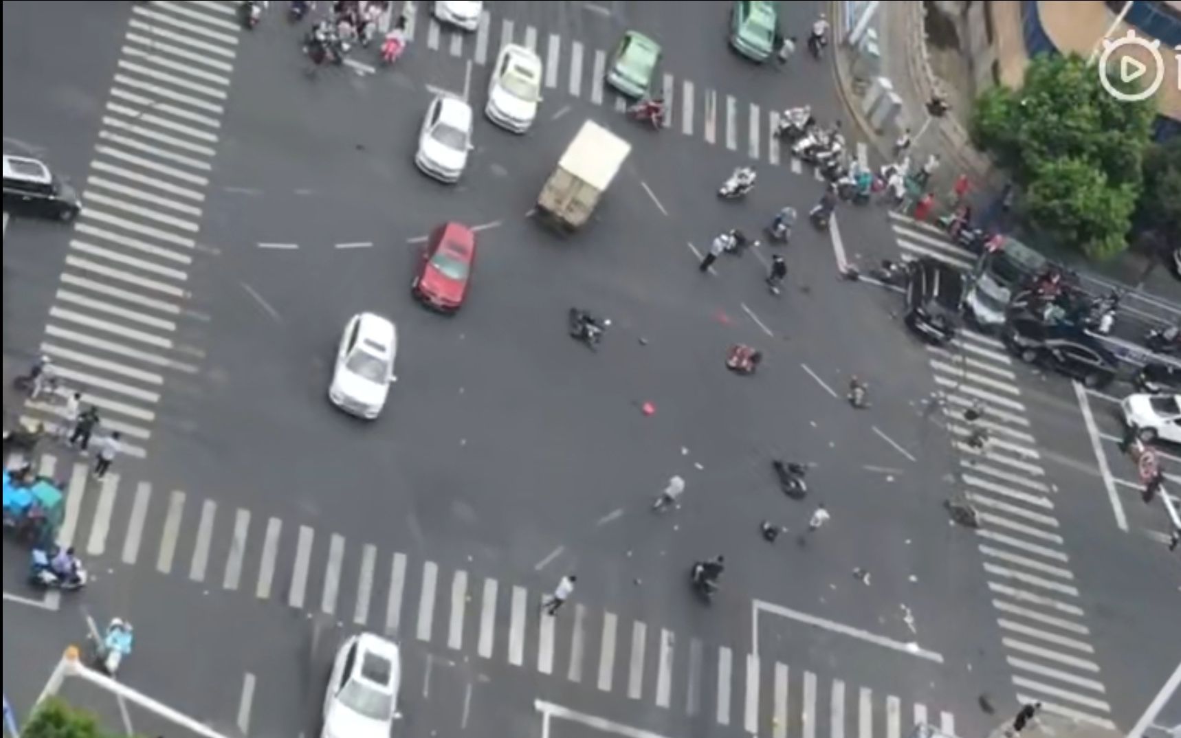 今日上午,事故现场有多辆电动车被撞。网络视频截图